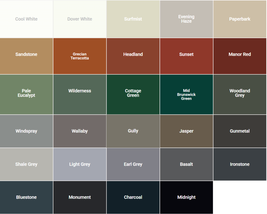 We have a huge range of Colours available for your concrete surfaces! No matter what colour scheme your home is we always have something to match and transform your home. Typically we recommend matching the colour of your gutters, roof and fencing. However sometimes matching in can cause your home to look to dark or too light so sometimes we also go with a colour that is opposite and on the grey-scale to ensure that the difference in colour still compliments your homes features!